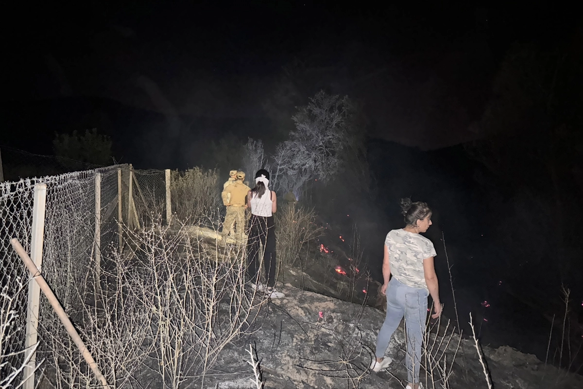 Yangını söndürmek için çalışma başlatan ekipler, iş makinelerinin yanı sıra kazma, kürek ve tırmıklarla alevlere müdahale etti. Jandarma ve emniyete ait TOMA'lar da yangın söndürme çalışmalarına destek verdi.