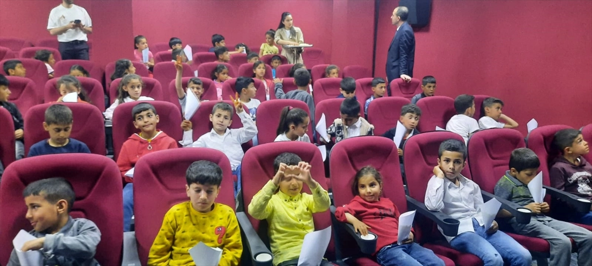 Köylerinden alınarak Ahmet Mücteba Albayrak Bilgi Evi'ne getirilen çocuklar, sinema salonunda film izledi.