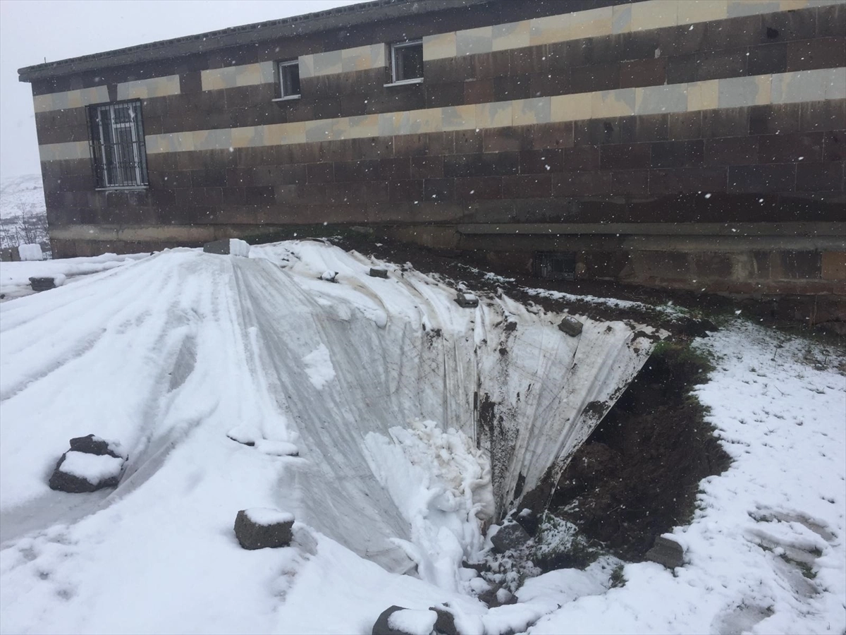 İlçenin Yukarı Kolbaşı köyünde etkili olan kar ve sağanak nedeniyle Nurullah Barlas'a ait ağılın bir bölümü çöktü.