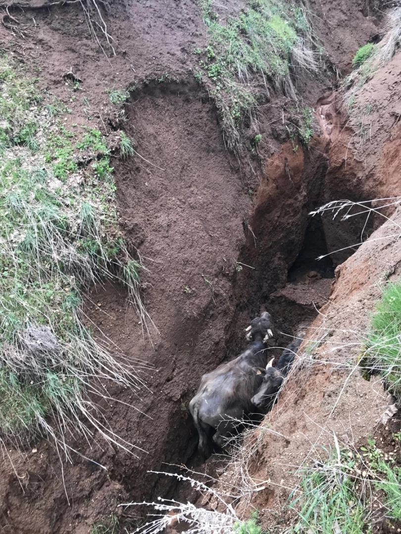 Gelen ihbarları değerlendirdiklerini belirten Yeşilırmak, "Emin Dayan'a ait 3 manda, merada otlarken Mazığ bölgesinde oluşan yarıklara düşmüştü. ŞAFAK üyelerimiz ve köy sakinleri, bölgeye giderek mandaları bulundukları yerden çıkardı. Vatandaşlarımız arama kurtarma gerektiren durumlarla ilgili derneğimizden yardım isteyebilirler." dedi.