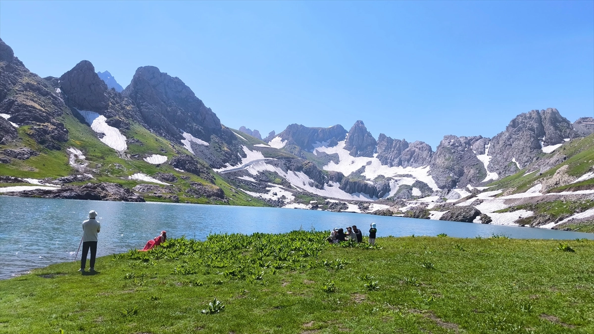 Daha sonra Sat Buzul Gölleri'nin bulunduğu bölgeye giden doğaseverler, burada yürüyüş yaptı, manzarayı görüntüledi.