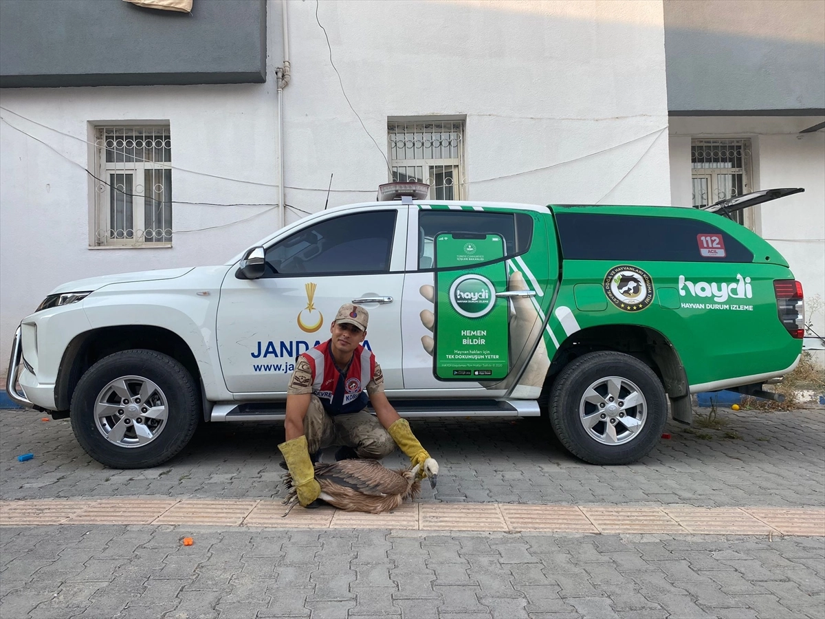 Valilikten yapılan açıklamaya göre, İl Jandarma Komutanlığı ekibi, ilçe kırsalında yürüttüğü devriye faaliyeti sırasında arazide yaralı haldeki akbabayı fark etti.