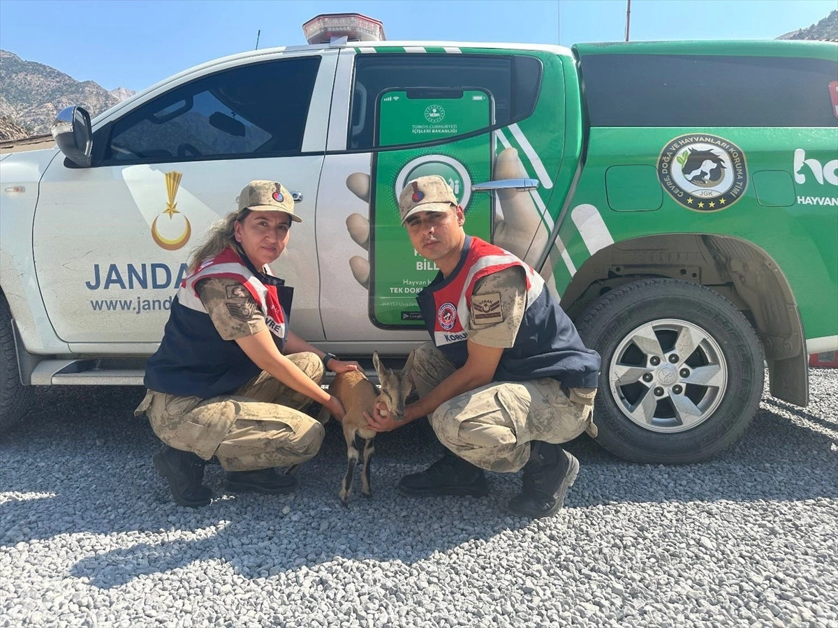 Valiliğin sosyal medya hesabından yapılan açıklamaya göre, İl Jandarma Komutanlığı ekipleri, Geçimli köyü mevkisinde icra ettiği devriye faaliyetinde yaralı dağ keçisi yavrusu fark etti.
