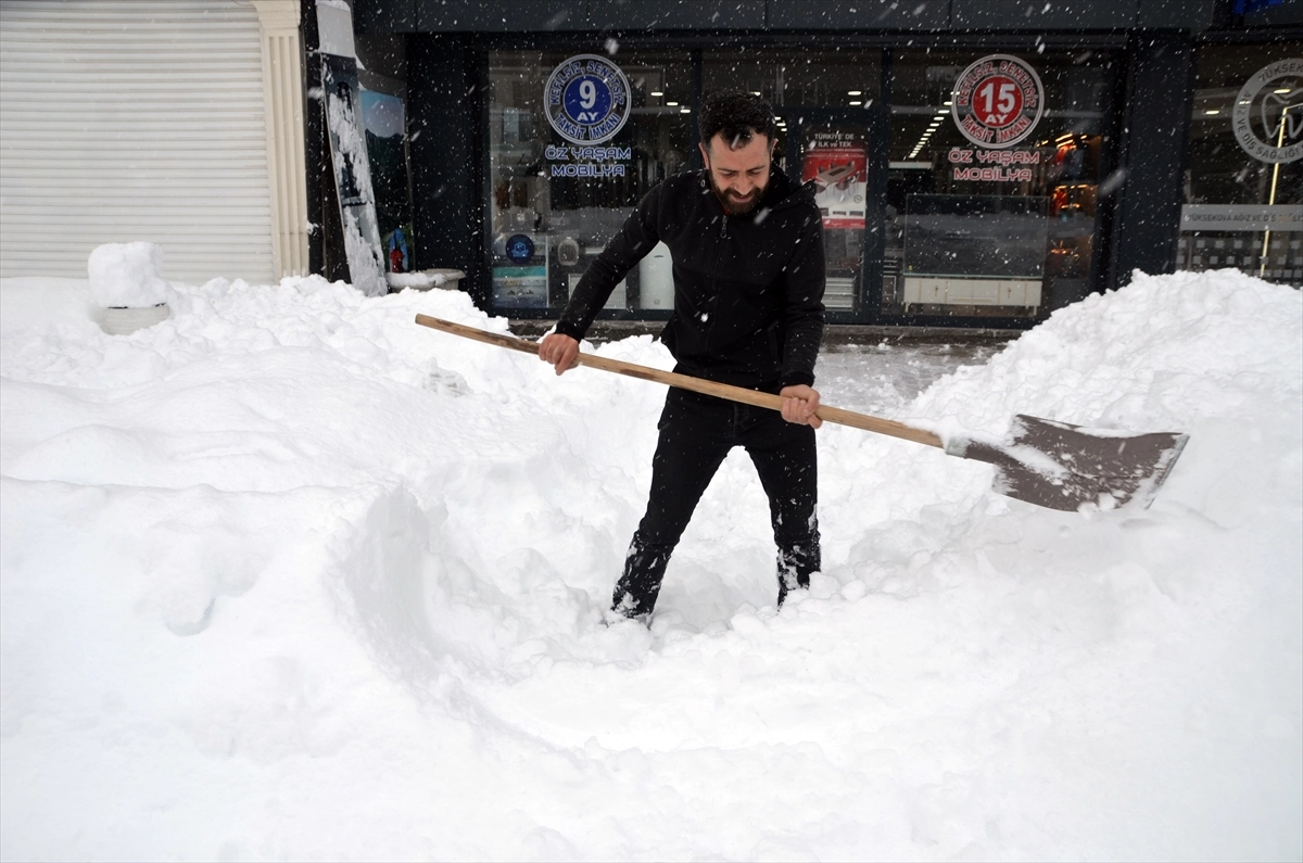 Vatandaşlar ev ve iş yerlerinin önünde biriken kar yığınlarını temizledi, sürücüler de kar altında kalan araçlarını çıkarmaya çalıştı.