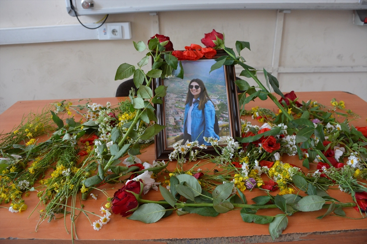 Kent merkezindeki Şehit Çetin Deniz Ortaokulu'nda düzenlenen programda, mesai arkadaşları ve öğrencileri, Yıldız'ın masasına fotoğrafını bıraktı, çiçeklerle süsledi.