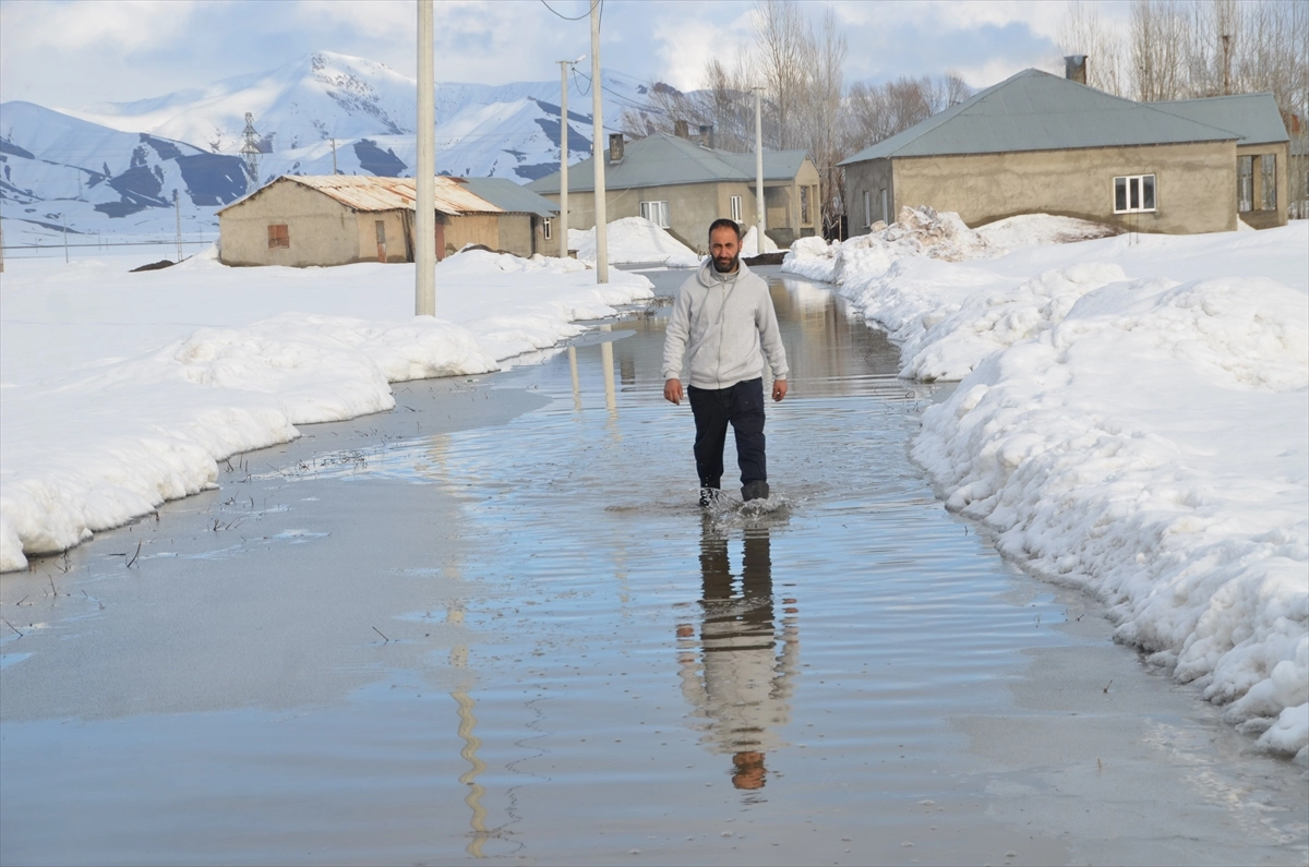 Yağmurun da etkisiyle hızla eriyen kar, ilçenin Kuruköy Mahallesi'nde bazı evlerin su altında kalmasına neden oldu.