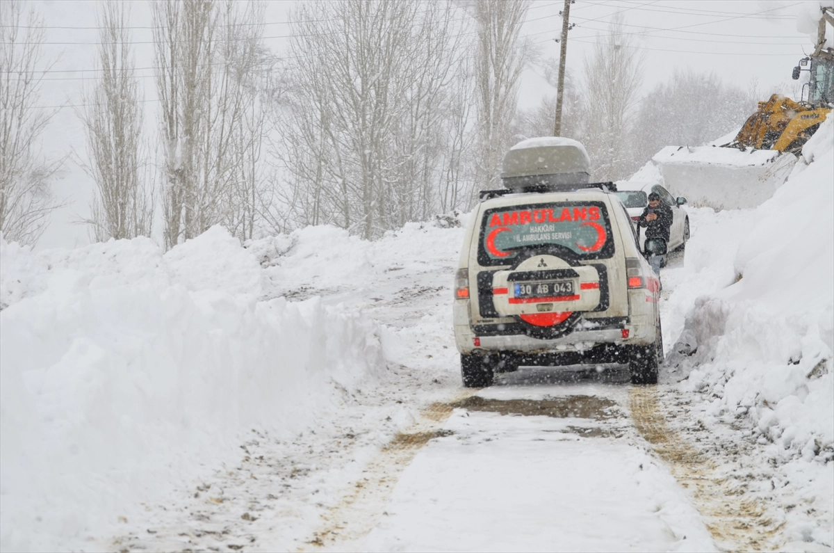 HAKKARİ (AA) - Hakkari'nin Yüksekova ilçesinde yolu kardan kapanan köyde doğum sancıları başlayan kadın, ekiplerin çalışması sonucu hastaneye ulaştırıldı.