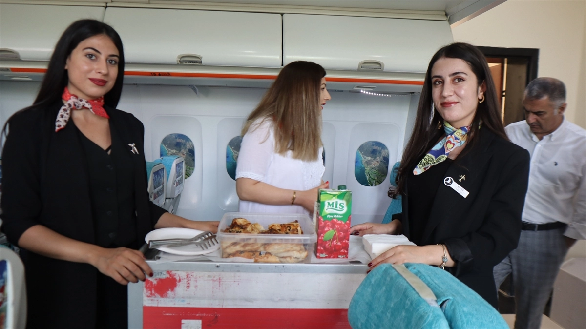 IĞDIR (AA) - Iğdır Üniversitesi Ulaştırma Hizmetleri Bölümü Kabin Hizmetleri Programı öğrencileri, uçak kabin hizmetleri eğitimini maket sınıfta alıyor.