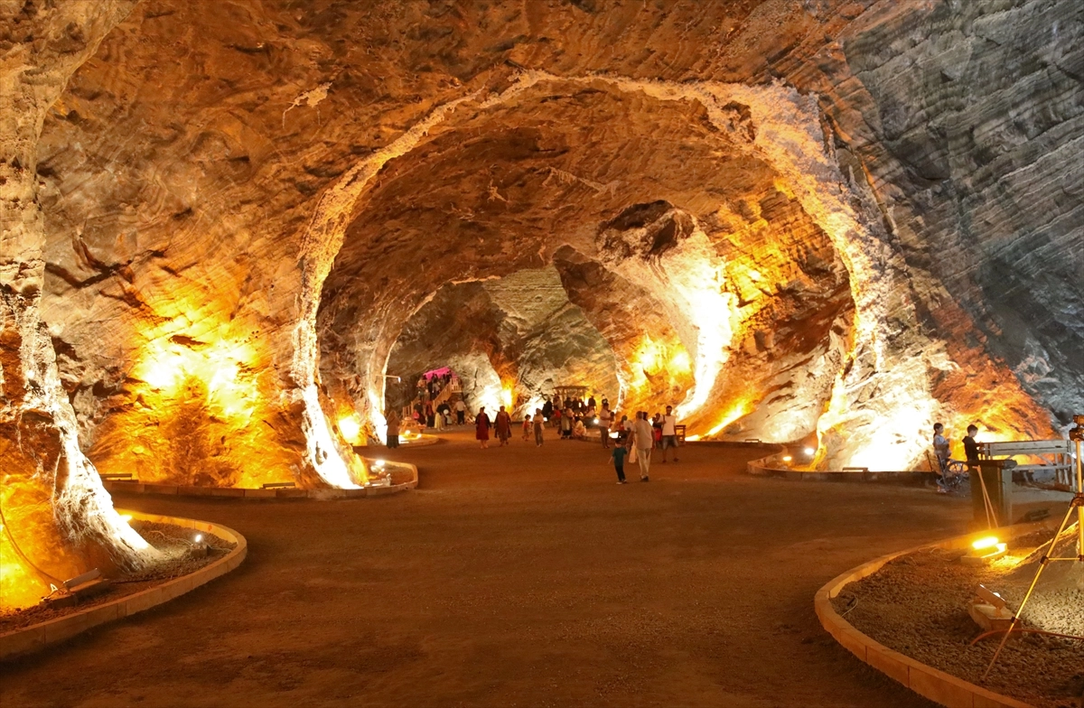 Yılın her mevsiminde 12 derece sıcaklığa sahip tuz mağaralarında serinleyen vatandaşlar, burada aileleriyle gezinti yapıp uzun süre vakit geçiriyor.
