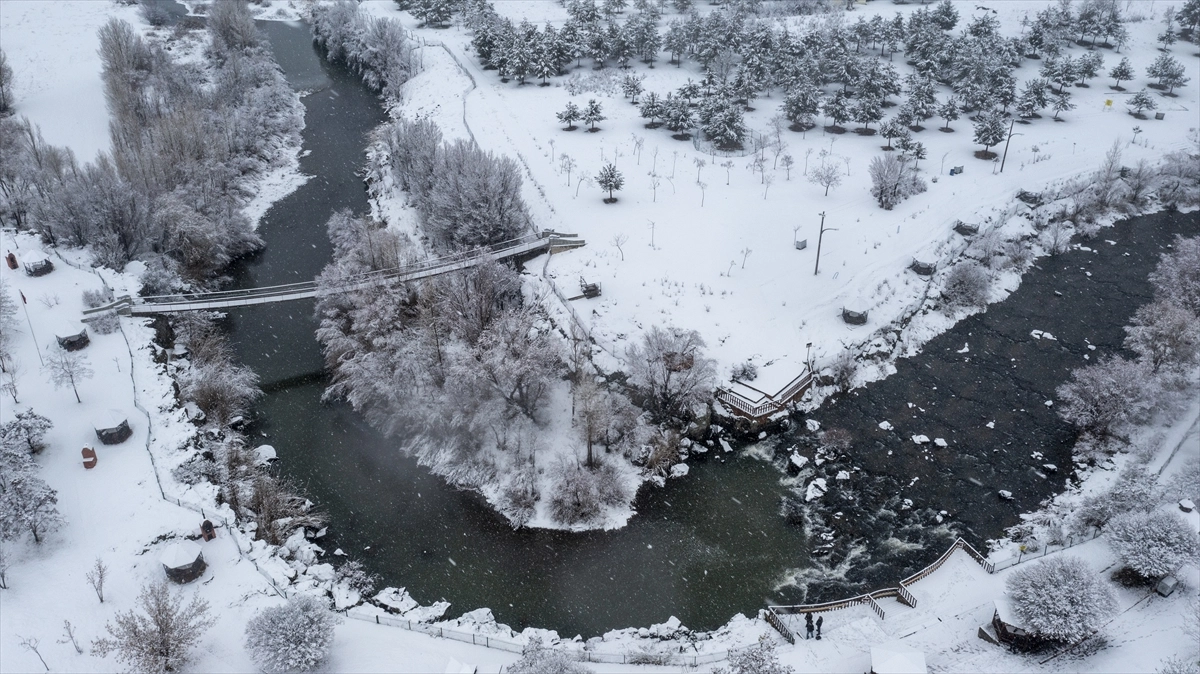 Kar yağışıyla ilçe merkezi ve İnci Kefali Tabiat Parkı beyaz örtüyle kaplandı.