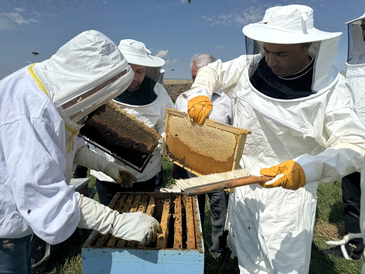 Halil Efendi Mahallesi'nde bulunan Kafkas Arısı Üretim, Eğitim ve Gen Merkezindeki kovanların bal süzümüne Ardahan Valisi Hayrettin Çiçek de katıldı.