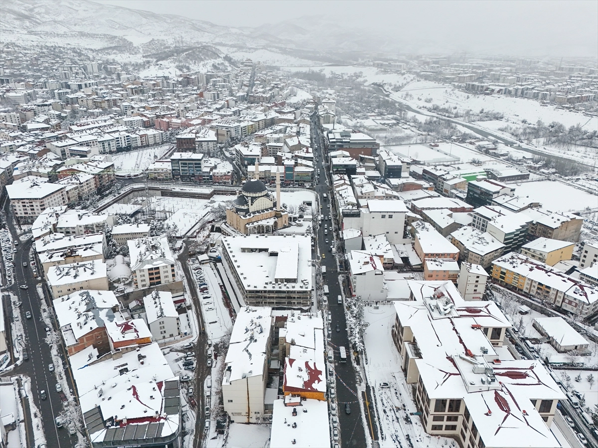 BİNGÖL (AA) - Bingöl'de kar yağışıyla beyaza bürünen kent merkezi havadan görüntülendi.