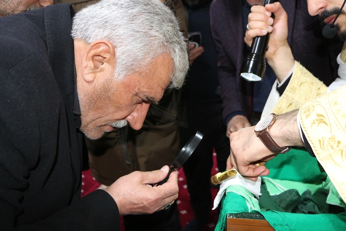 Vatandaşlar, cam fanustaki Sakal-ı Şerif'i görmek için yoğunluk oluşturdu.