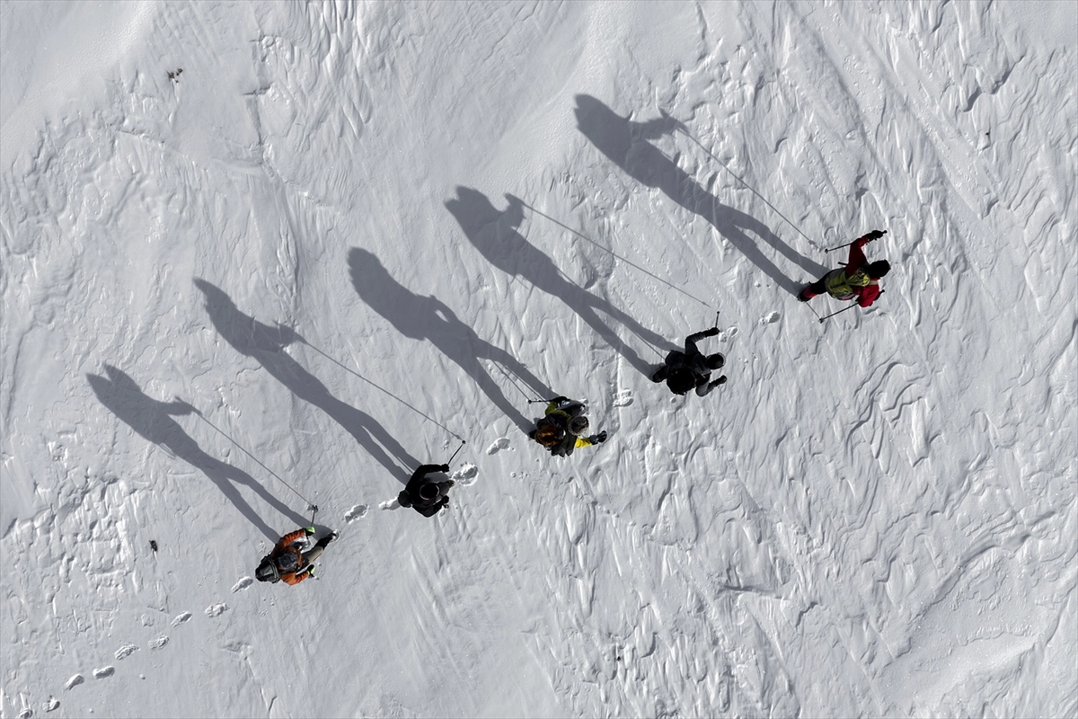 Dağcılar, kar kalınlığının yer yer 1,5 metreyi bulduğu dağda yürüyüş gerçekleştirdi.