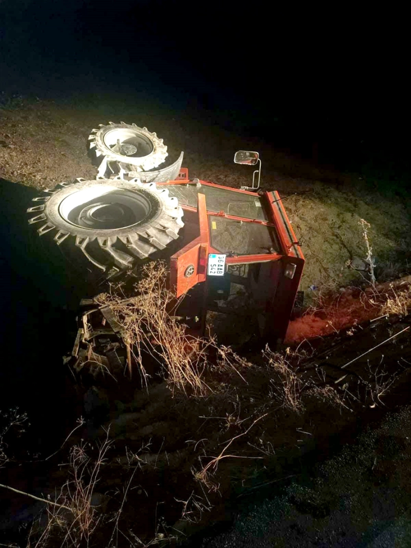 M.K. (62) idaresindeki 36 AAB 542 plakalı traktör, Belencik köyü yolunda şarampole devrildi.
