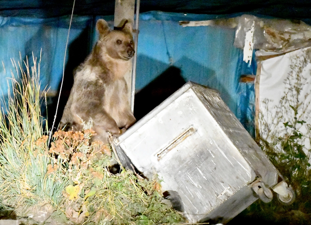 Daha sonra gece saatlerinde cadde ve sokaklarda gezinen bozayılar, çöp konteynerlerini devirerek içindeki çöplerle beslenmeye çalıştı.
