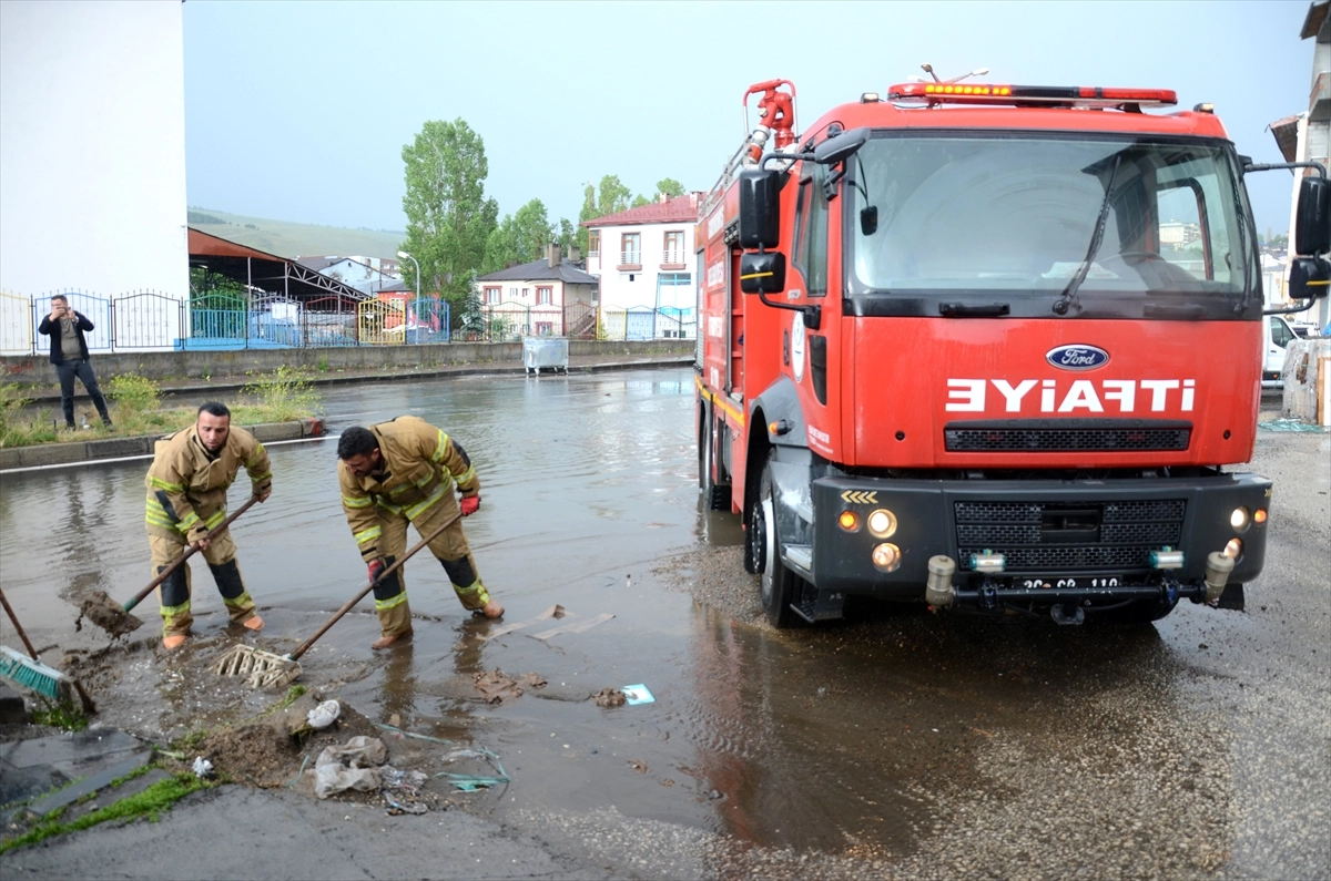 Sarıkamış Belediyesine bağlı itfaiye ekipleri, evlerdeki suları tahliye etmek ve tıkanan rögarları açmak için çalışma başlattı.