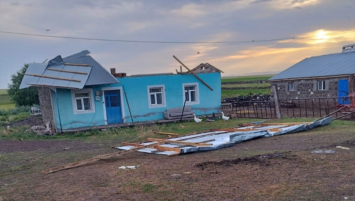 KARS (AA) - Kars'ta etkili olan şiddetli rüzgar köydeki bazı evlerin çatılarına zarar verdi.