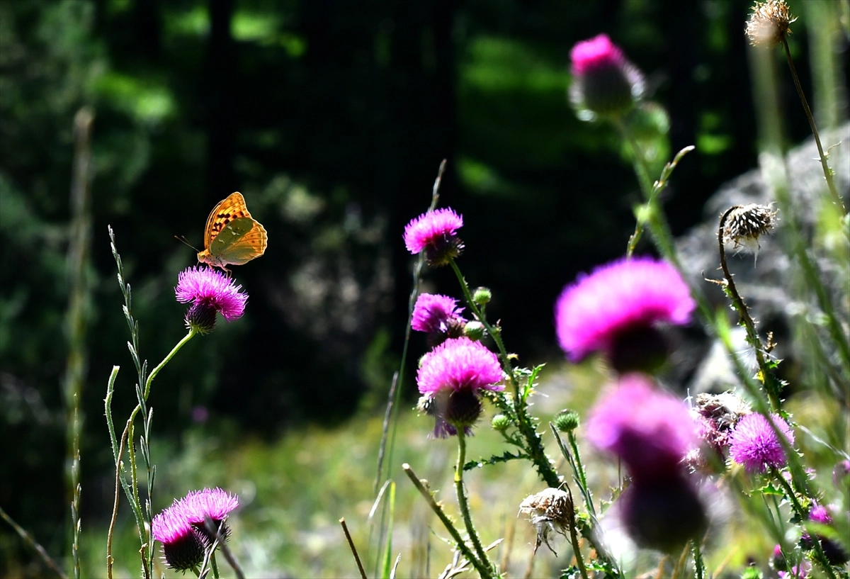 Sarıçam ormanlarıyla çevrili 2 bin 600 rakımlı Kızılçubuk, Keklik Vadisi ve Çataldere bölgesi, yağışların ardından rengarenk açan çiçekler ve kelebeklerle bezendi.