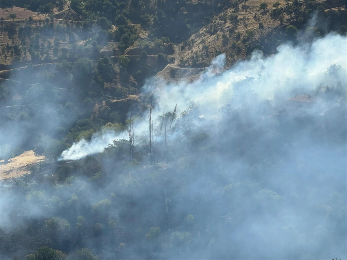 MALATYA (AA) - Malatya'nın Pütürge ilçesinde otluk alanda başlayan, orman ve bahçe alanlarına sıçrayan yangına müdahale ediliyor.