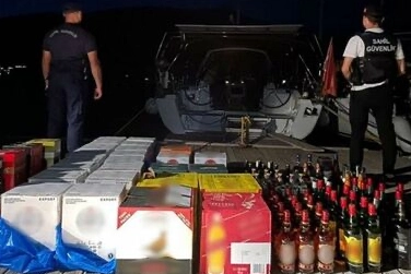 Operasyon kapsamında yapılan aramalarda, teknelerden birinde 310 şişe bandrolsüz kaçak içki, diğerinde ise 4 gram skunk, 1 tabanca, 186 adet fişek ve 3 şarjör ele geçirildi.