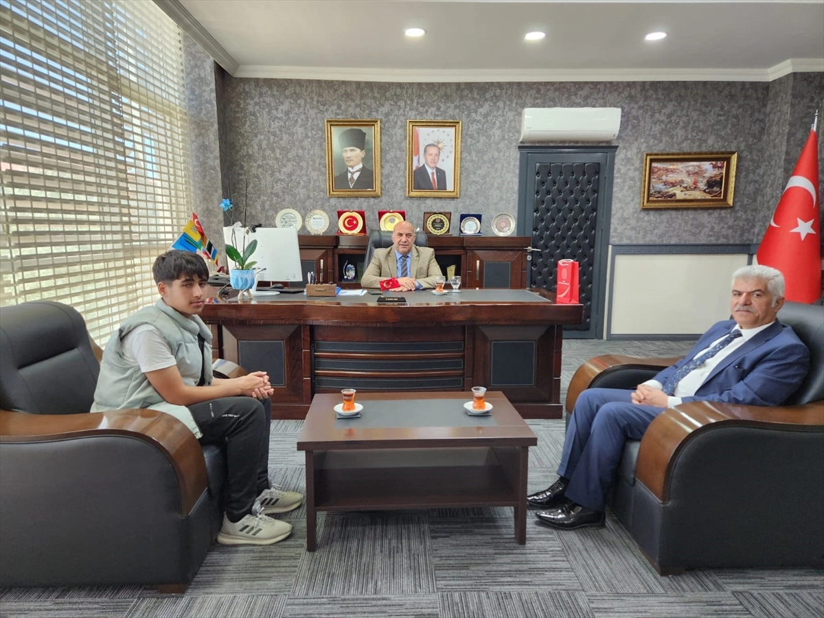 İl Milli Eğitim Müdürlüğü'nün sosyal medya hesabından yapılan bilgilendirmeye göre, Dibekdüzü İlkokulunda gönderden düşerken tuttuğu bayrağı katlayıp öpen Tuşba Mesleki ve Teknik Anadolu Lisesi öğrencisi Aydın ile makamında bir araya geldi.