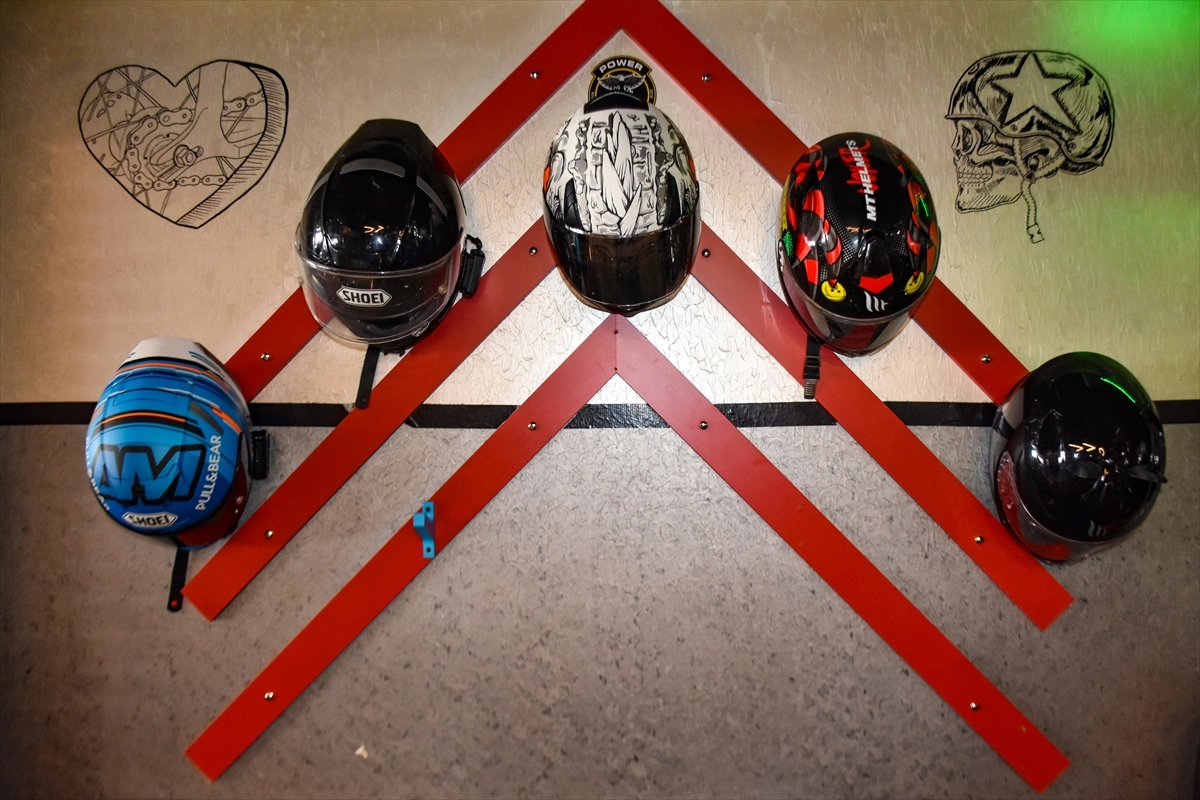 Motosiklet ve kaskları dekor olarak kullandığı kafenin bir bölümünü tamirhaneye çeviren Süer, bir yandan müşterilerini ağırlarken bir yandan da arızalanan motosikletleri tamir ediyor.