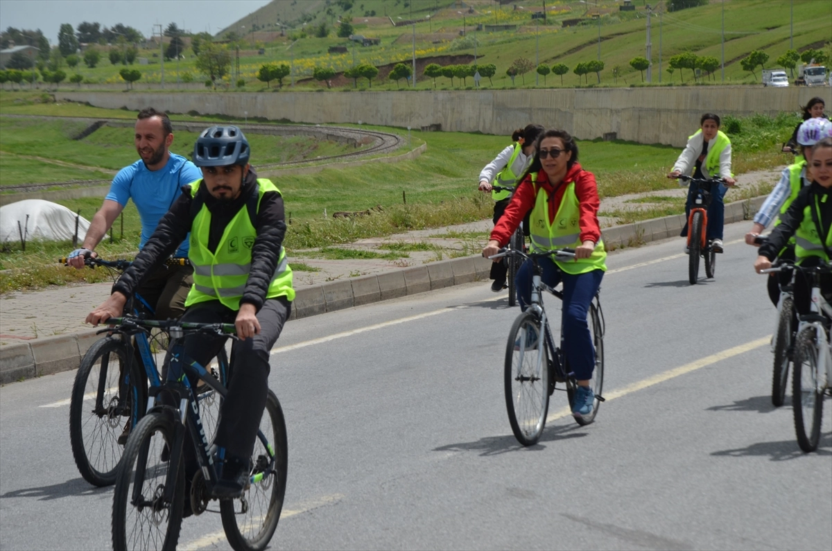 Lale Vadisi Park'ta bir araya gelen yaklaşık 200 gönüllü, Muş Alparslan Üniversitesi'ne kadar pedal çevirdi.