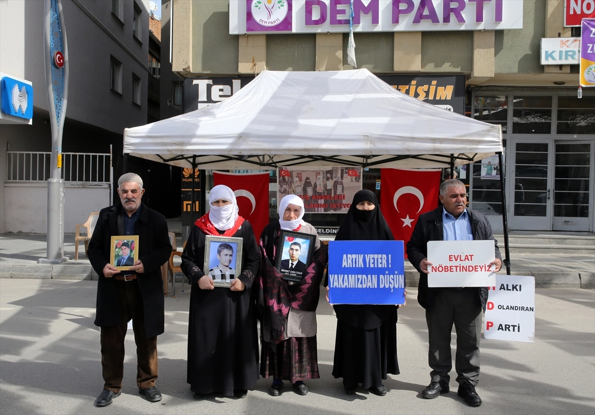 DEM Parti İl Başkanlığı binası önünde bir araya gelen aileler, "Anneler direniyor" ve "Yeter artık evlatlarımızı bırakın" pankartları açtı.