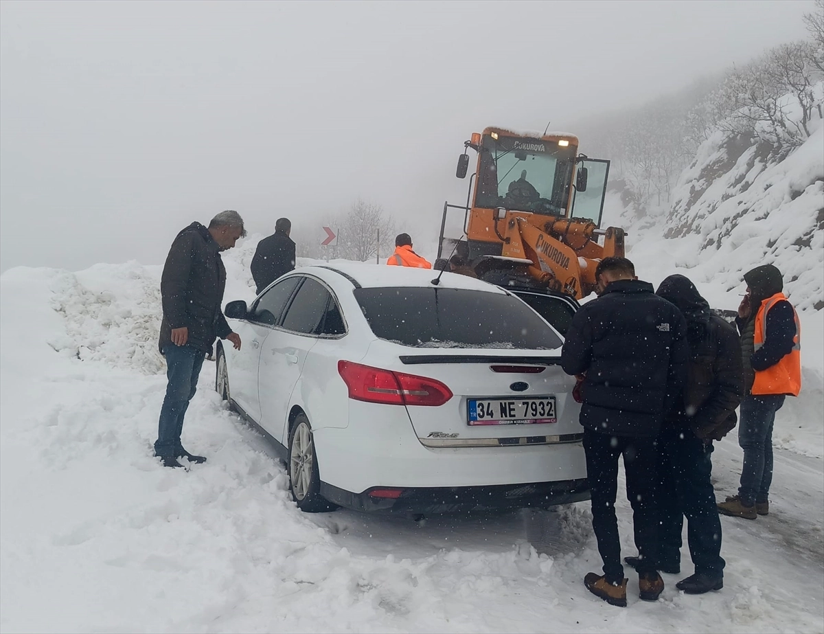İş makinesi operatörü Bülent Turan, "Kardan dolayı yolda kalan araçlar için çalışma başlattık. Yolu açarak araçların geçmesini sağladık. Bölgede çalışmalarımız sürecek." dedi.