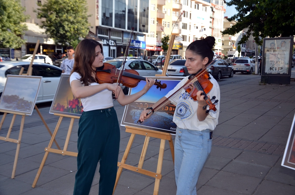 Vatandaşlar ise sanatçıların çaldığı keman eşliğinde sergiyi gezdi.