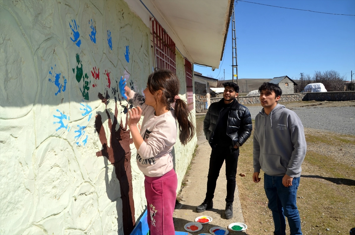MUŞ (AA) - SABRİ YILDIRIM - Muş'ta, sosyal sorumluluk projesi kapsamında köyleri dolaşan lise öğrencileri, okulların duvarlarını çizdikleri resimlerle renklendirdi.