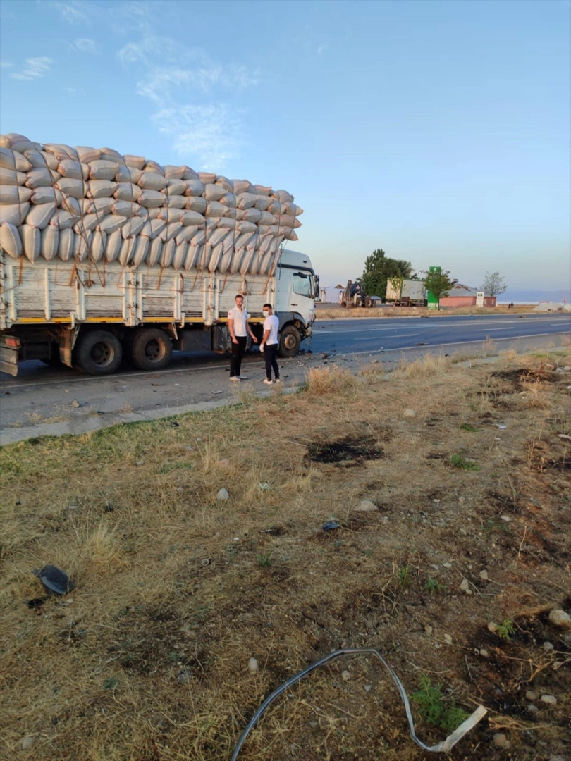Bu sırada arkadan gelen 49 D 1677 plakalı saman yüklü kamyon da hem otomobile hem de küçükbaş hayvanlara çarparak durdu.