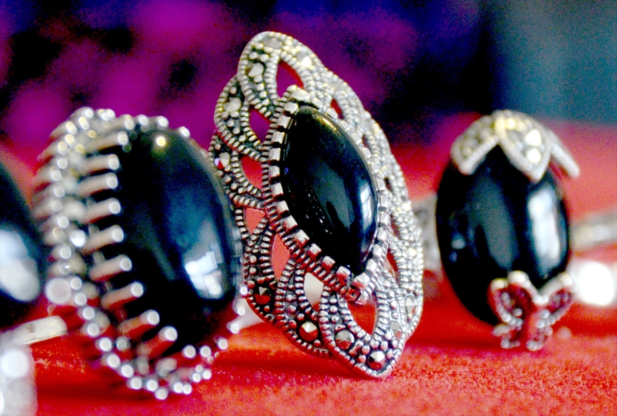 KARS (AA) - HÜSEYİN DEMİRCİ - Takı yapımının yanı sıra çeşitli sektörlerde kullanılan ve lavların hızla soğumasıyla oluşan volkanik cam obsidiyen, Kars'ın Sarıkamış ilçesinde meslek lisesi öğrencilerinin hünerli ellerinde takı ve çeşitli ürünlere dönüşüyor.