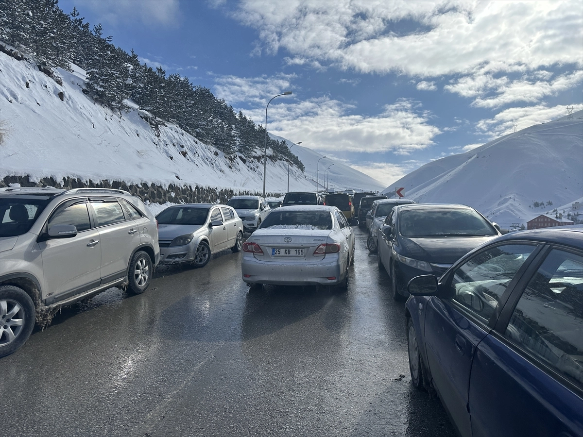 Kayak merkezinde yaşanan yoğunluk nedeniyle uzun araç kuyrukları oluştu.