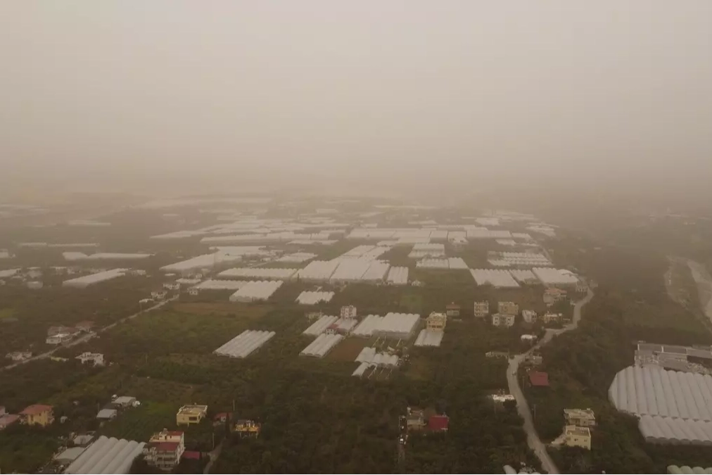 Mersin genelinde etkili olan toz taşınımı, kenti adeta kızıl bir örtüyle kapladı. Özellikle Erdemli ilçesinde havadan görüntülenen manzaralarda görüş mesafesinin yaklaşık 100 metreye kadar düştüğü gözlemlendi.