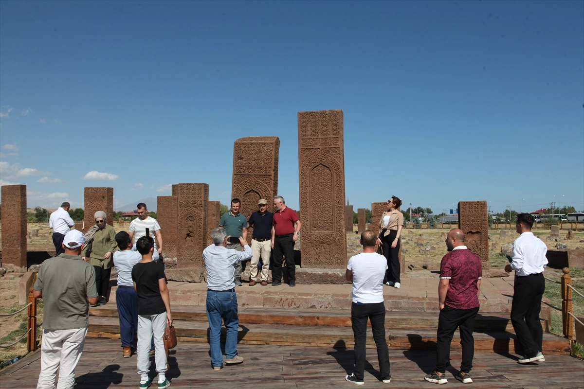 BİTLİS (AA) - SERDAR ADIYAMAN - Muş'un Malazgirt ve Bitlis'in Ahlat ilçelerinde düzenlenen Malazgirt Zaferi'nin 953. yıl dönümü kutlamalarına katılmak için yurdun dört bir yanından gelen ziyaretçiler, dönüş yolculuğunda Selçuklu Meydan Mezarlığı'nda ecdada dua etti, sanat eseri niteliği taşıyan mezar taşlarını inceledi.