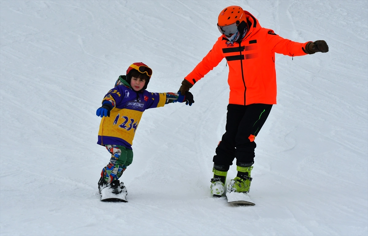 İlkbaharda merkezdeki pistlerde yoğunluk oluşturan yerli ve yabancı turistler, kayak, kızak ve snowboard yapıyor.