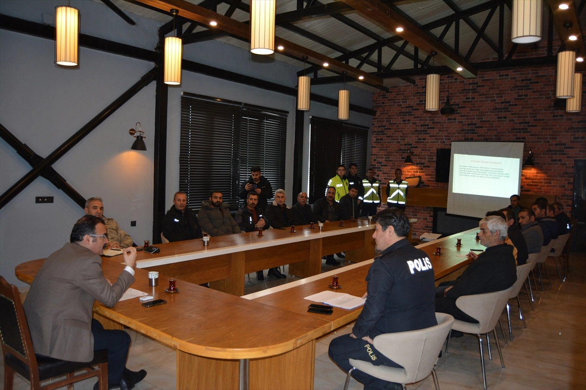 Kaymakam Ali Ekber Ateş başkanlığında öğretmenevinde yapılan toplantıda, şehirlerarası seyahat işletmelerinde bilet satışı, emniyet kemeri kullanımı zorunluluğuyla ilgili sesli veya görüntülü olarak uyarıların yapılması, yapılacak bilgilendirme ve denetim faaliyetlerine sivil trafik personelinin görevlendirilmesi konuları konuşuldu.