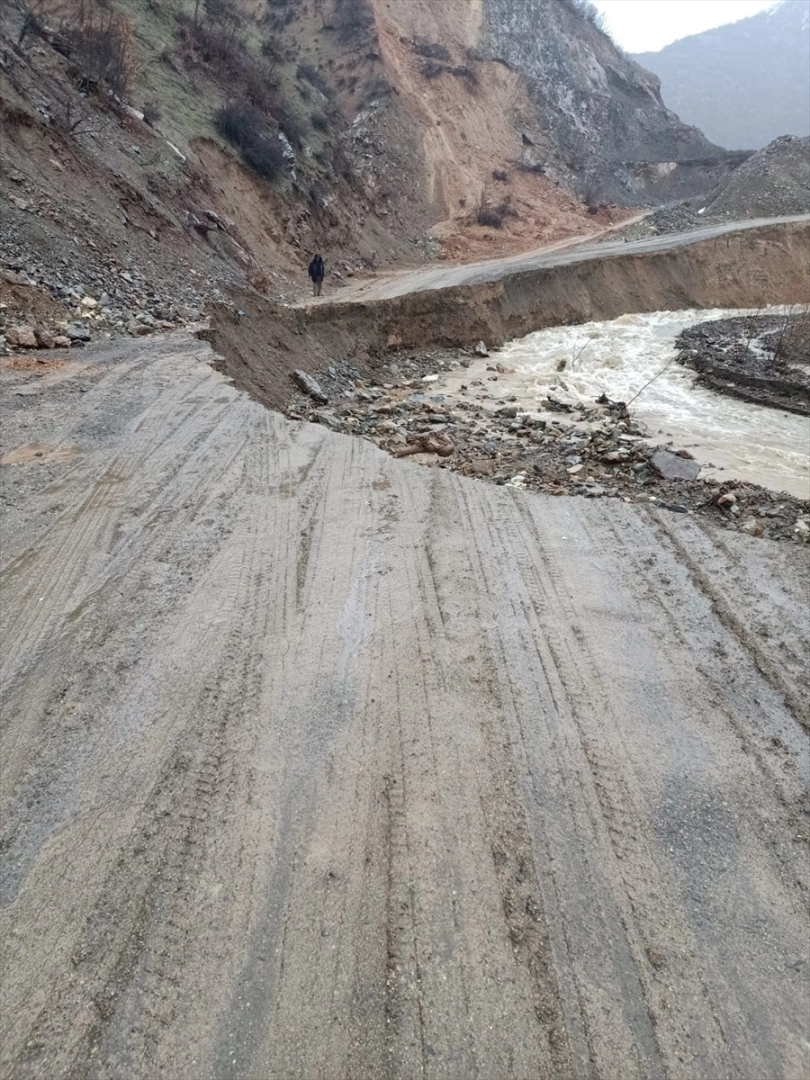 İlçeye bağlı Alan köyü yolunun bir kısmı da derenin taşması sonucu çöktü. İl Özel İdaresi ekipleri, ulaşıma kapanan yolda çalışma başlattı.
