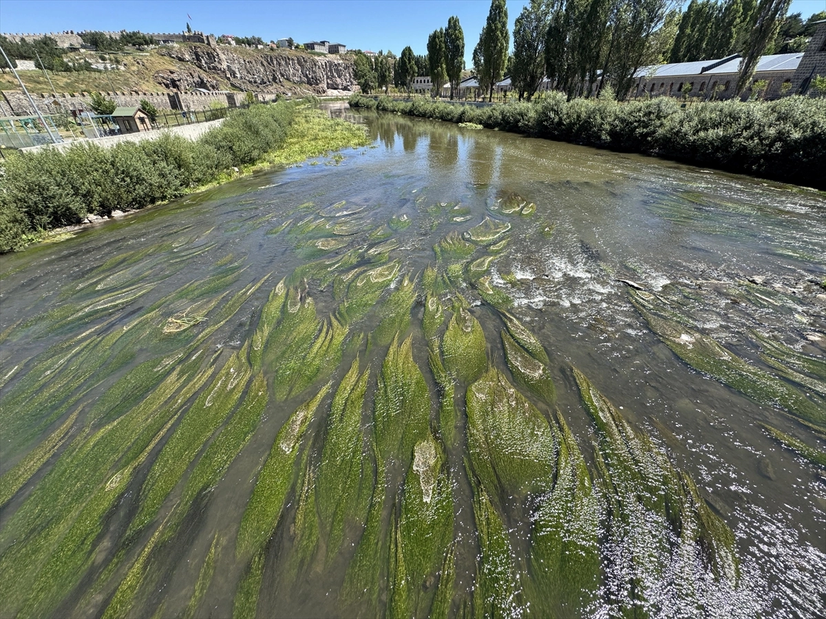 Nehrin tarihi Ardahan Köprüsü ile Millet Bahçesi bölgelerinde yoğun yosun oluştu.
