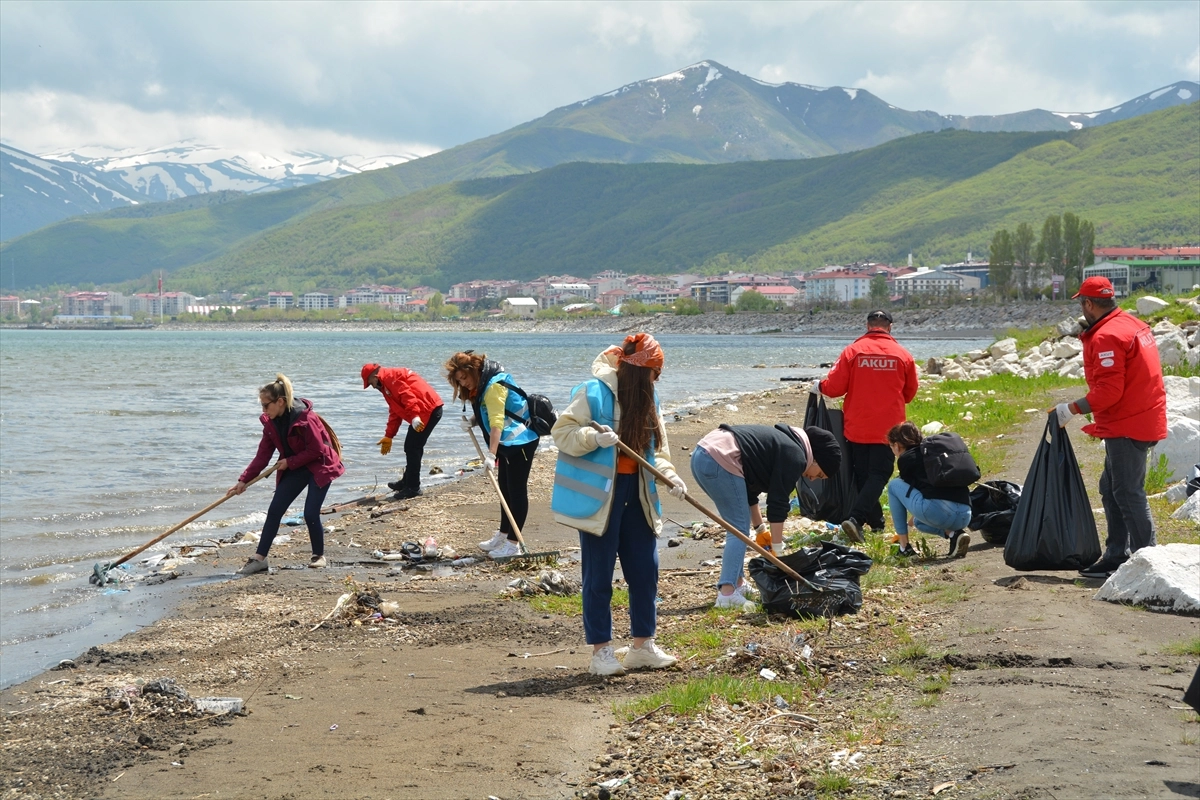 BİTLİS (AA) - Bitlis'in Tatvan ilçesinde Van Gölü kıyısında biriken çöpler temizlendi.