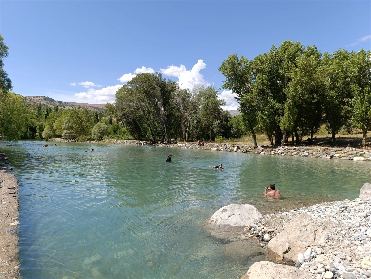 TUNCELİ (AA) - Tunceli'nin Çemişgezek ilçesinde sıcak havadan bunalan vatandaşlar, Tağar Çayı'nda yüzerek serinlemeye çalıştı.
