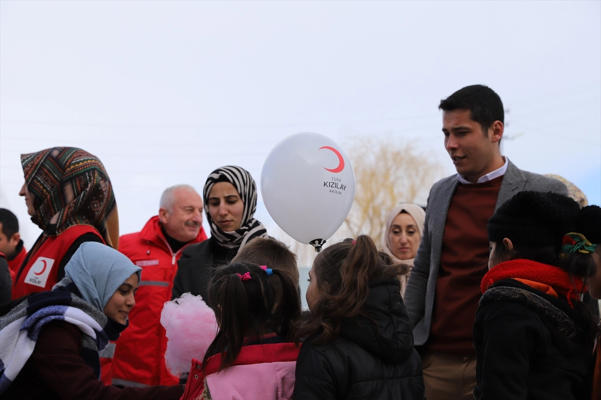 İstanbul'dan ilçeye gelen Kızılay gönüllüleri, oyunlar oynadıkları, pamuk şeker ve balon dağıttıkları öğrencilere kıyafet ve kırtasiye malzemeleri de hediye etti.