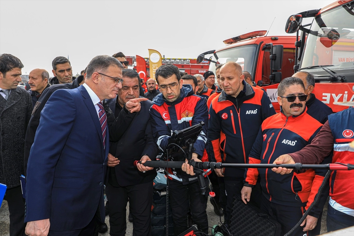 Van Valiliği sosyal medya hesabından yapılan açıklamaya göre, İtfaiye Daire Başkanlığında düzenlenen törene katılan Vali ve Belediye Başkan Vekili Ozan Balcı, alınan malzemeleri inceledi.