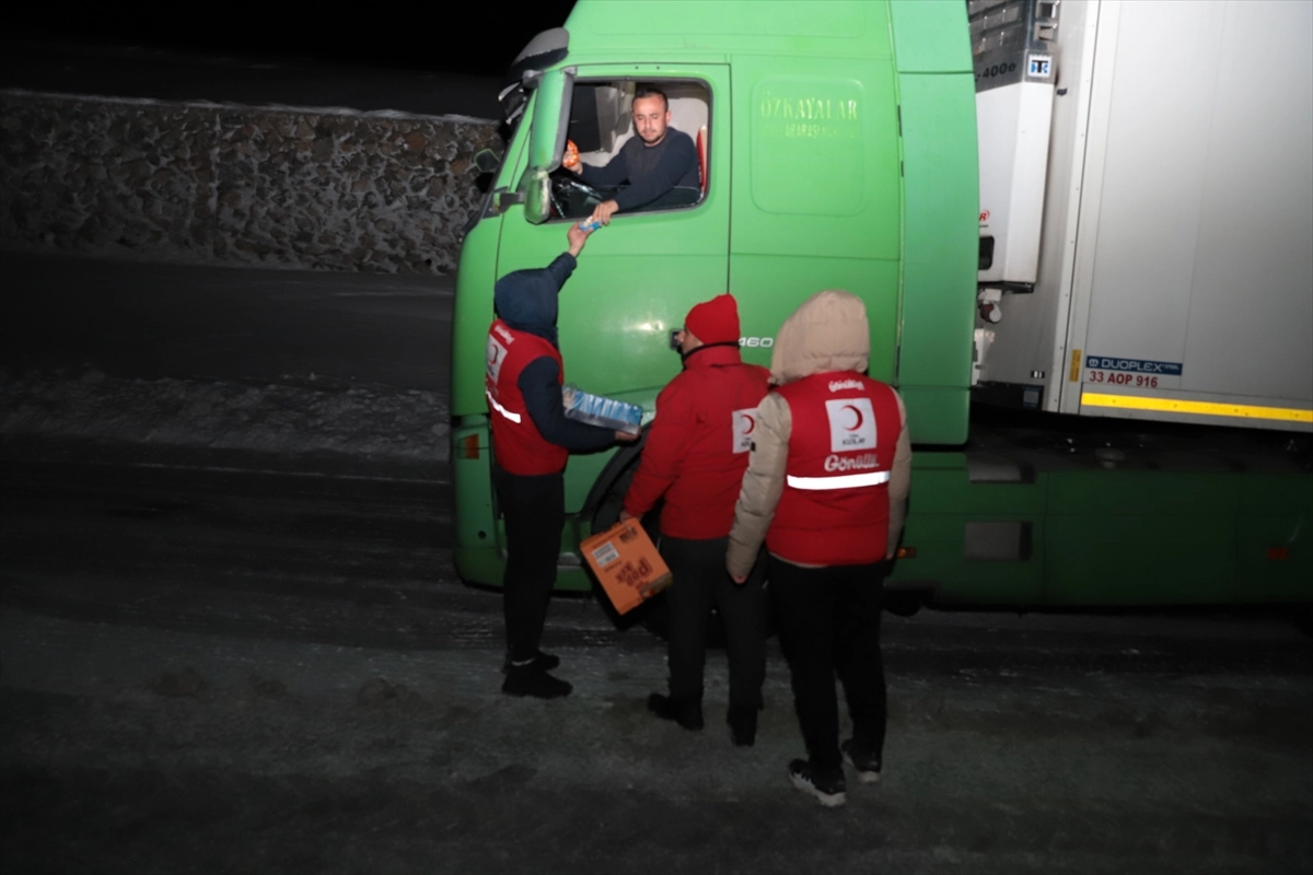 Tır sürücüsü Emrah Kızılkaya, AA muhabirine, olumsuz hava koşulları nedeniyle yolda kaldıklarını belirterek, "Kızılay ekiplerimiz yardımımıza geldi. Sağ olsunlar bizlere kumanya getirdiler. Sahurumuzu bununla yapacağız. Allah onlardan razı olsun." dedi.
