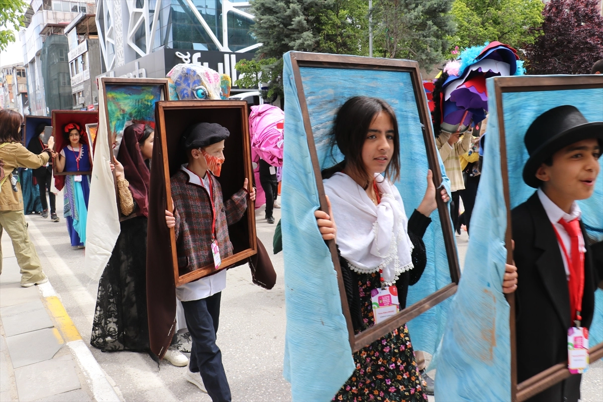Şenliğin ilk gününde masal kahramanlarının kostümlerini giyen minik sanatseverler ile palyaço kostümlü oyuncular, kortej yürüyüşü yaptı.