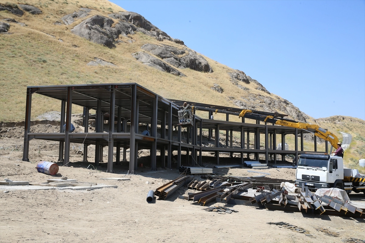 VAN (AA) - Van'ın Gürpınar ilçesinde 63 yıldır arkeolojik kazıların yürütüldüğü Çavuştepe Kalesi'nde kazı evi inşa ediliyor.
