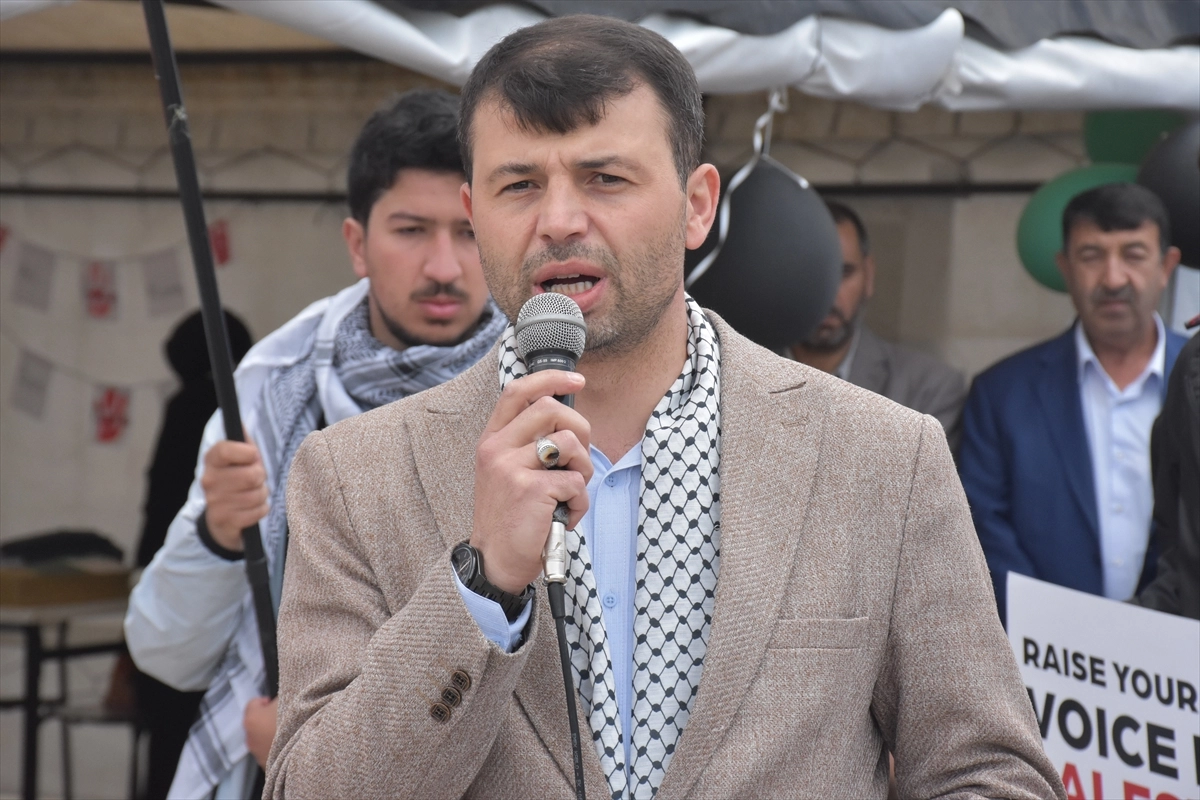 Burada grup adına açıklama yapan YYÜ Cami İmam Hatibi Alaattin Demirel, İsrail'in dünyanın gözü önünde Gazze halkını acımasızca katlettiğini söyledi.