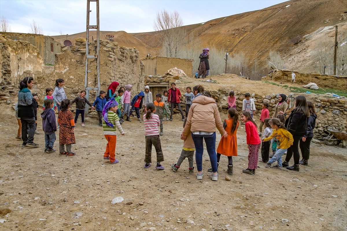 Gönüllü gençler, köy meydanında topladıkları çocuklarla oyunlar oynayarak eğlenceli anlar yaşamalarını sağladı.